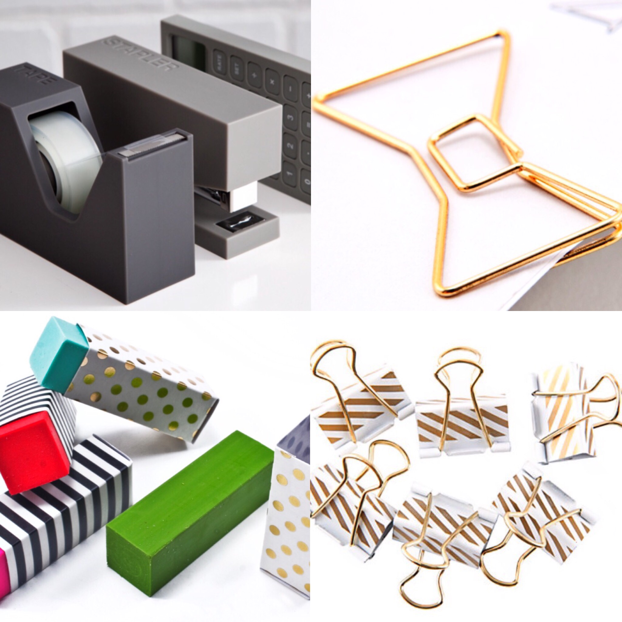 Grey Desk Set/Bow Tie Paper Clips/Kate Spade Eraser Set/Gold Binder Clips